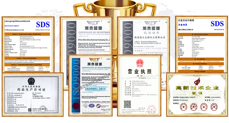 Xi'an Deli Biyokimya Sanayi A.Ş., Ltd. öylesiklodekstrin ve türevlerinin araştırma ve geliştirmesi, üretimi ve satışı konusunda uzmanlaşmış bir yüksek teknoloji kuruluşudur. 27 Ağustos 1999'daki kuruluşundan bu yana şirket, "aksesuarlara odaklanma, önce kalite, samimi hizmet, birinci sınıf için çabalama" kalite Politikasına bağlı kalmaktadır. 20 yıldan fazla süren sıkı çalışma ve geliştirmenin ardından şirketin şu anda DELI Marka Hidroksipropil Betadex, DELI Marka Betadex Sülfobütil Eter Sodyum ürünleri bulunmaktadır. Yukarıdaki ürünler FDA'ya tescil edilmiş ve dosyalanmıştır.